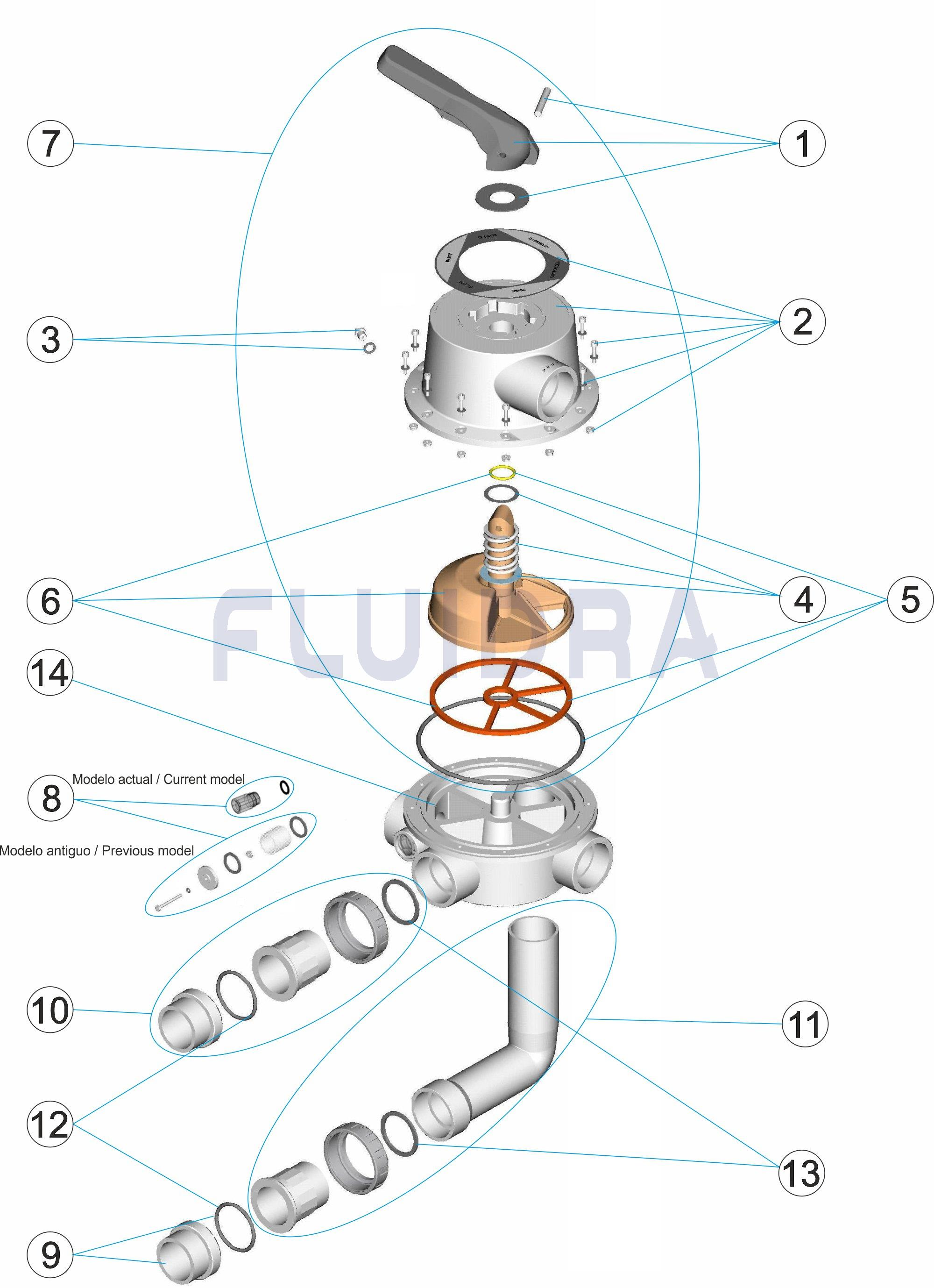 Ersatzteile 2½” NPT multiport valve - Configuration 3