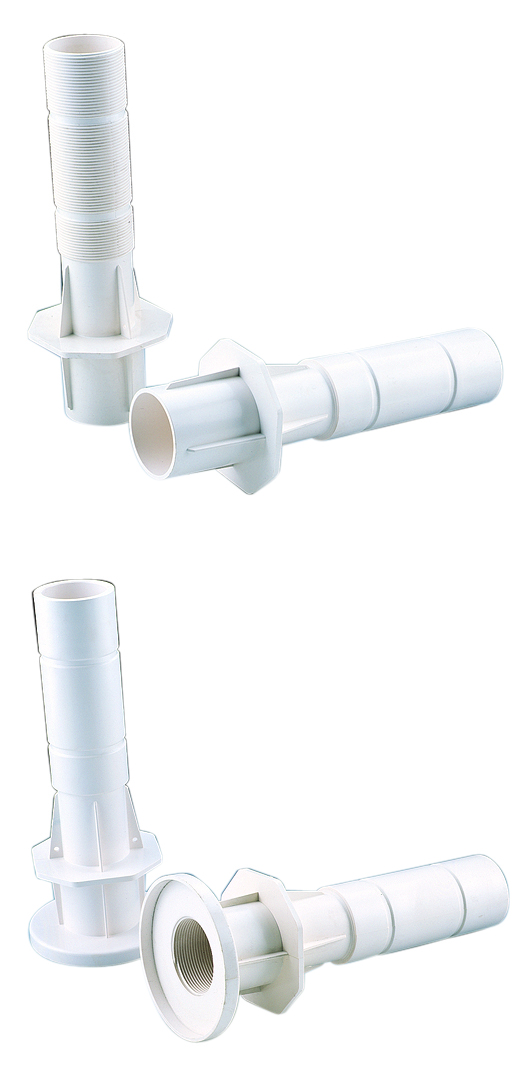 Range of 300 mm long conduits for Ø 2” inlets and Multiflow that can be cut to different lengths, depending on the thickness of the pool wall. Made of ABS. The ribs of the end plates have holes for fitting the wall conduit to the pool structure, which makes assembly straightforward.