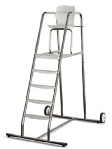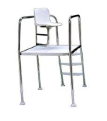 A lifeguard chair is required in pool facilities where an elevated platform is needed for adequate supervision of bathers. The 90º swivel chair allows access from both the front and the rear. The frame is made of AISI-304 stainless steel (diameter 43 mm) and the seat, platform and treads are made of plastic.