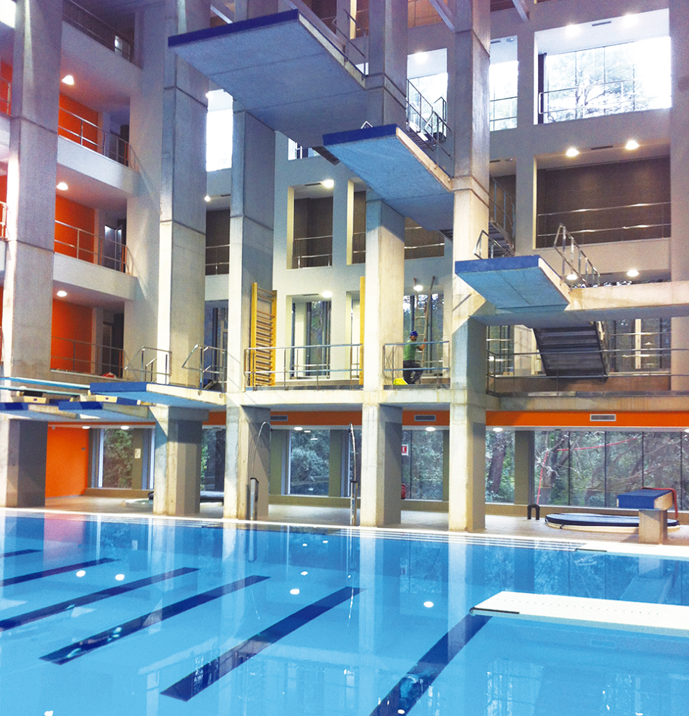Choose a place and we'll build a pool there! The advantage of the lightweight structure that is easily adaptable is that pools can be built even in awkward conditions. Small spaces, rooftops, stadiums, etc.