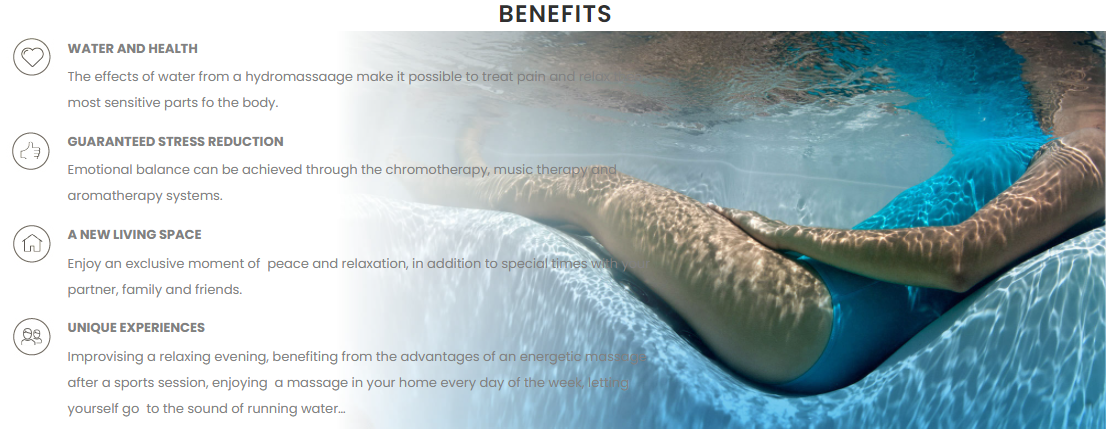 Spas designed for commercial spaces, wellness centres, hotels…A wide range of options and finishes that cover all needs.