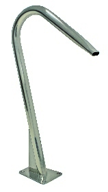 Residential water cannon in polished stainless steel. Fastened to the ground with screws and anchor studs.