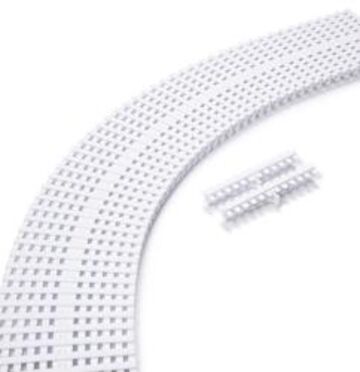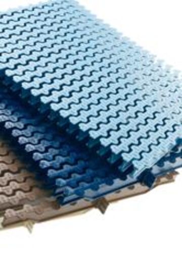 Formada por placas de módulos para tramos rectos o curvos (radio exterior de 1 ó 2 m), ensambladas entre sí por la unión clicada (macho-hembra), que permite cierta elasticidad de montaje, a la vez que absorbe posibles dilataciones, efecto de las diferencias térmicas a las que la rejilla se ve expuesta.