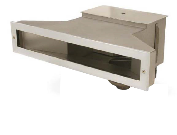En acero inoxidable AISI-316L. Con rebosadero de Ø50mm, cesto y tapa en acero inoxidable, ambos incluidos. Dispone de alojamiento para montar la válvula reguladora de nivel 73453 (ver página 122). Con toma para conexión equipotencial. Caudal recomendado 7,5 m3/h. Los modelos 56313 y 56316 incluyen bridas para aplicaciones de liner. También existen con inclinación de 6°: modelos 72744 y 72743 ver página 117. Nivel de agua +/- 8 cm. Capacidad del cesto 1,2l.