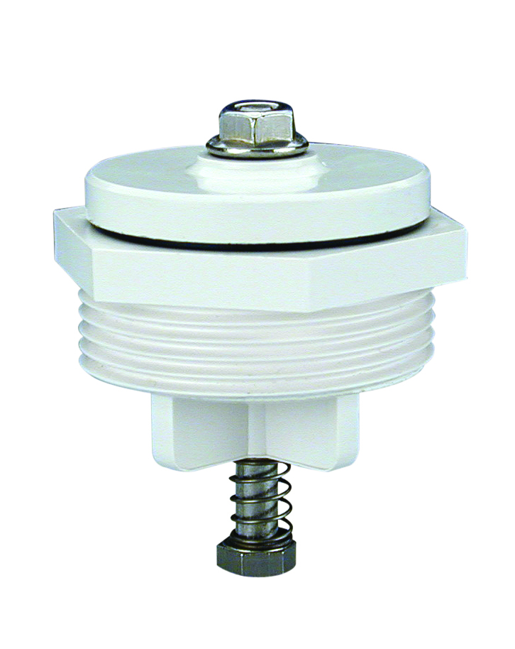 Para aliviar la presión que pudieran ejercer sobre el vaso de la piscina, posibles aguas subterráneas, se recomienda la instalación en el sumidero de una válvula hidroestática y un tubo de drenaje. Válvula hidroestática para colocar en el fondo de los sumideros con salida 2”, Fabricada en ABS blanco, con tornillo y muelle de inox. Rosca macho 11/2”.