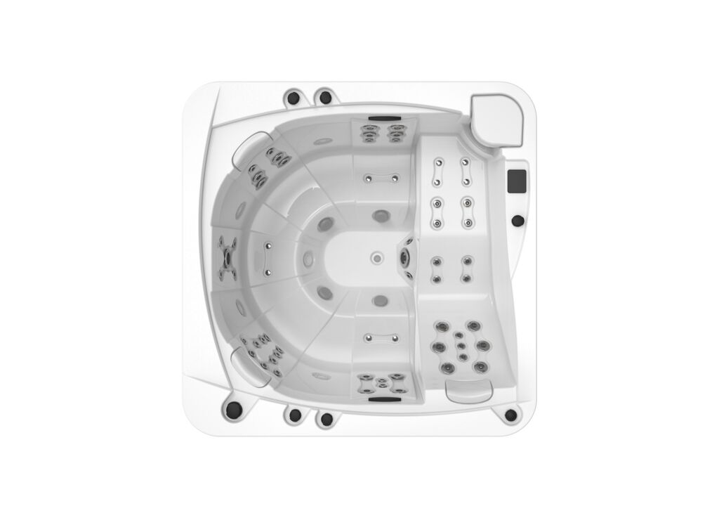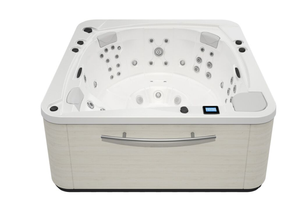 'The Pacific 70 spa has 50 hydrotherapy jets and 10 air nozzles distributed throughout the shell so that whatever position they are in, you will enjoy the fullest of massage circuits in your home. AstralPool, a European spa manufacturers The Pacific 70 spa is available in 5 colours and 4 wood finishes for the cabinet. It can also be purchased without the cabinet for in-ground installation inside your home or outside in the garden. This is a good option for anyone who wishes to have an in-ground spa at home that is inexpensive, partly due to the fact that it can be purchased without the cabinet. The EcoSpa system, which can reduce consumption by as much as 69%, and the Bluetooth surround sound system for listening to music are optional features that are well worth highlighting.''
