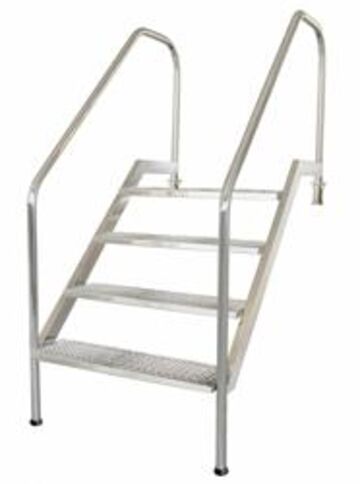 Chaque échelle est fournie avec des embouts inférieurs en plastique qui reposent sur le mur de la piscine sans l’endommager et dotée d’un ancrage de fixation, prévu pour un branchement à une prise équipotentielle.
