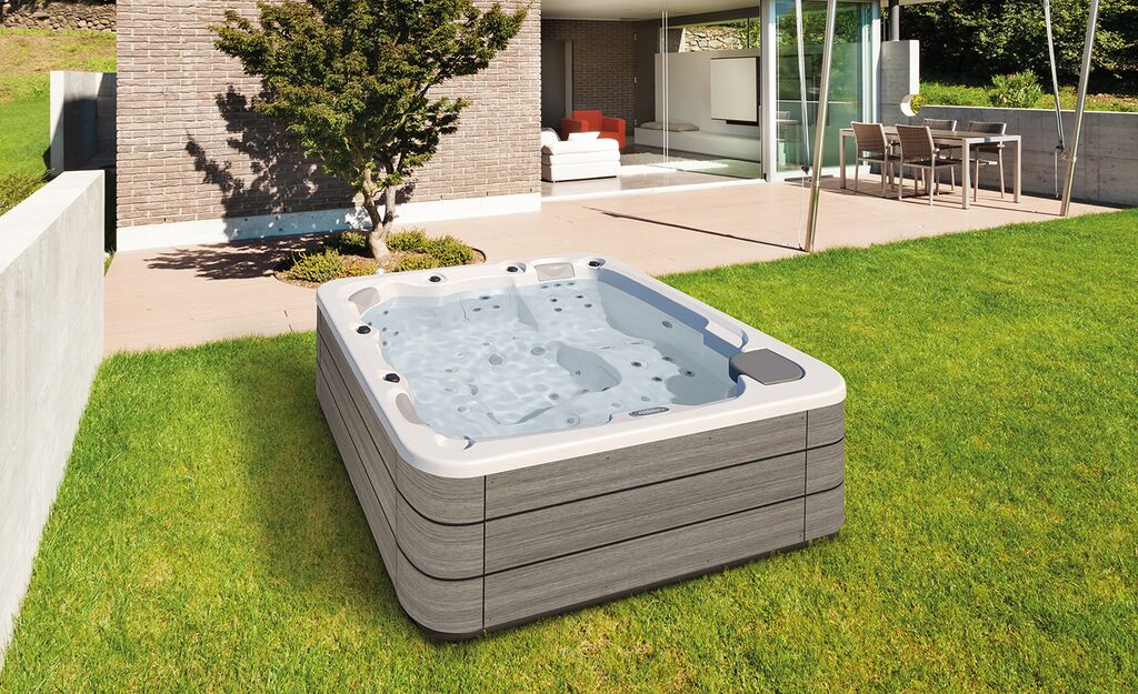 The Emotion E hot tub is for 5 people (3 seats + 2 loungers), made for residential and domestic use. Equipped with hydromassage pumps, heating and filtration. It has a BALBOA system to control all of the hot tub's features.