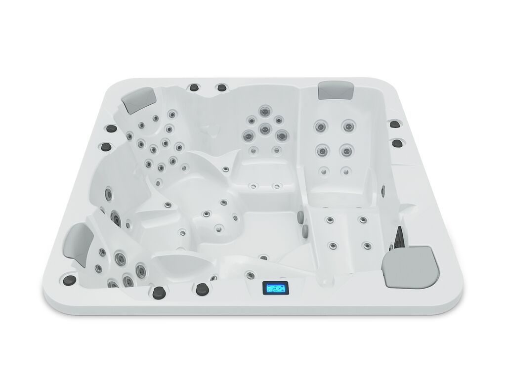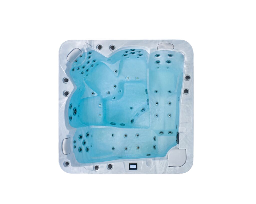 The Evolution 70 Inground hot tub is for 5 people (3 sitting / 2 lying down), made for residential and domestic use. Integrated by 52 + 16 massage mouths, 3 head restraints and chromotherapy LED projector.