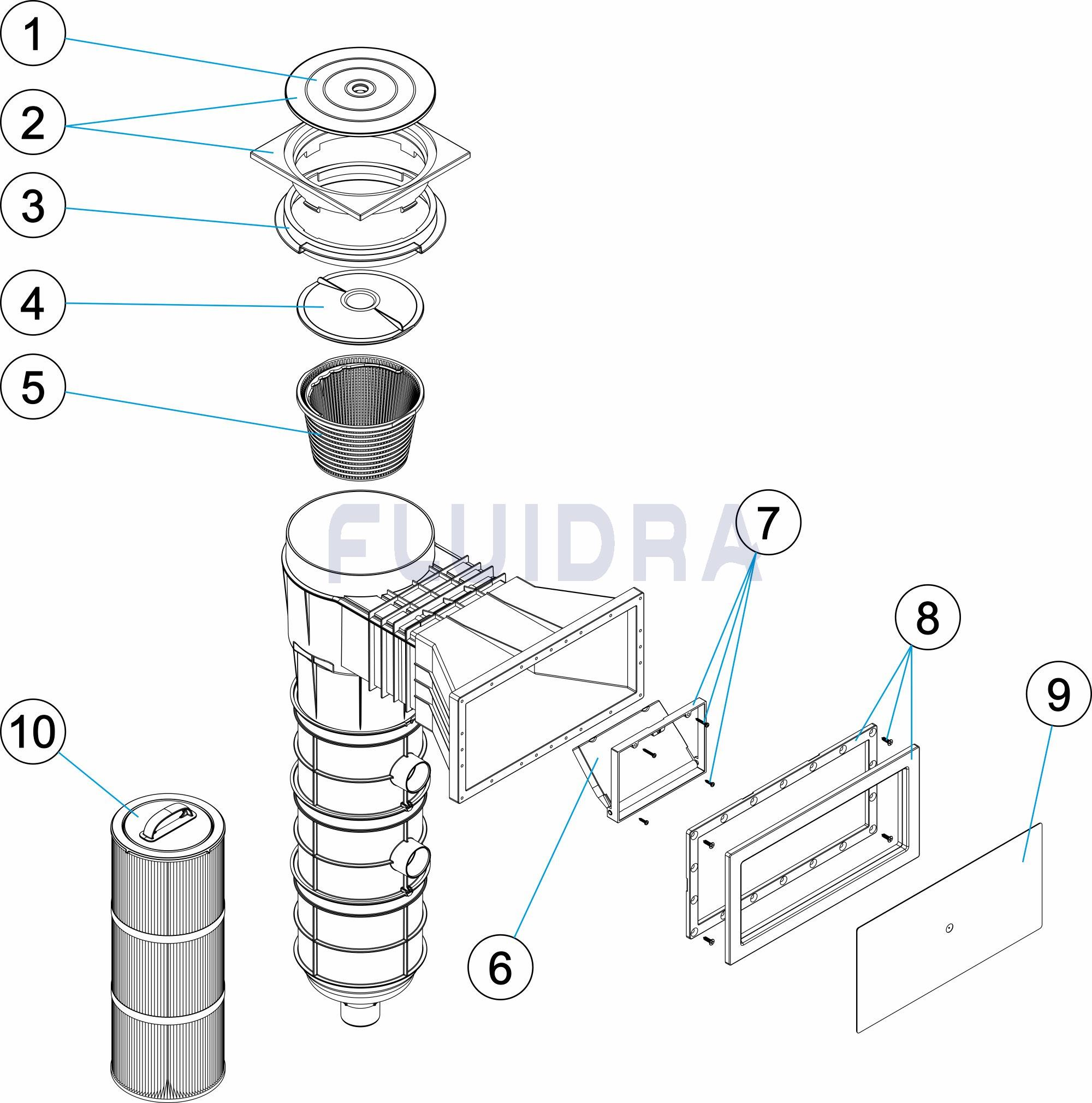 Pièces de rechange Skimmer filtrant pour béton avec 2 cartouches 16 m3