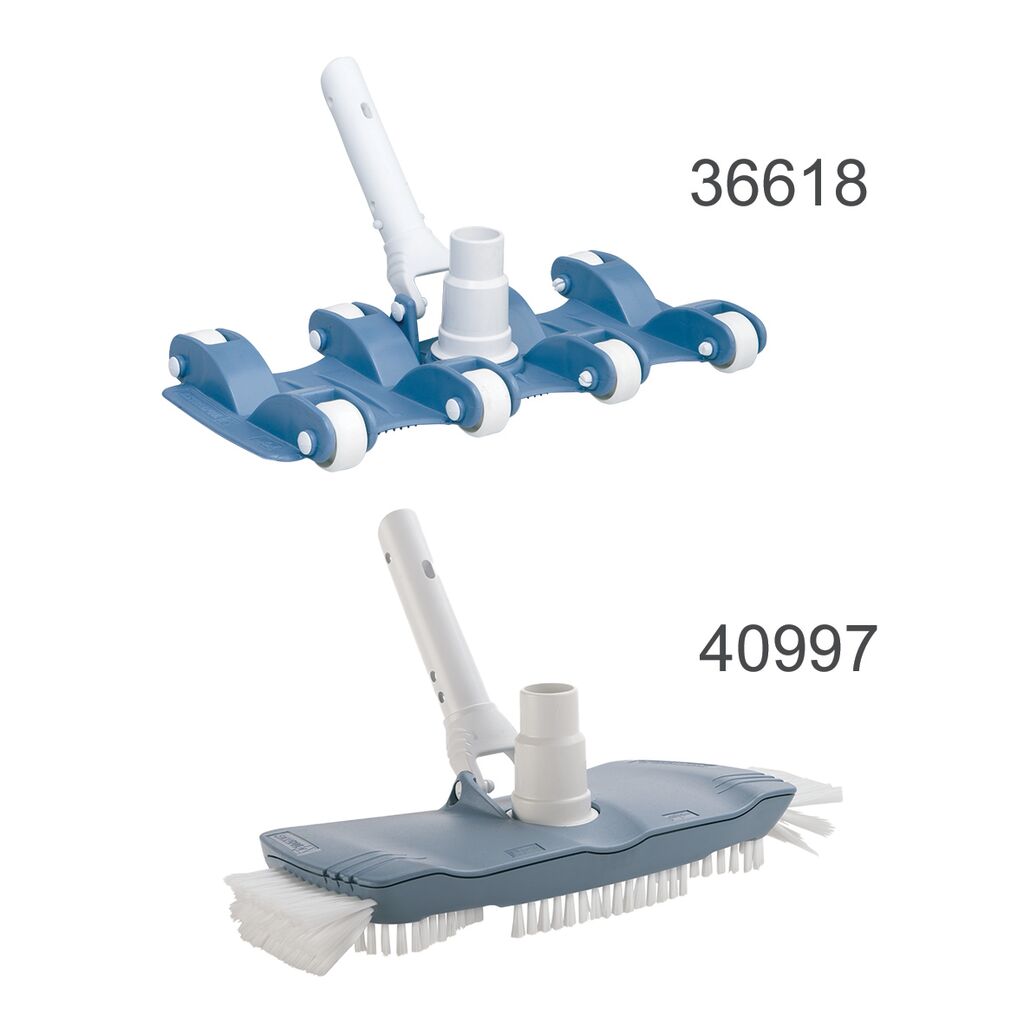 40997: Prodotto ideale per la rimozione di particelle di sporco e sabbia dal fondo della piscina. Costruito in polietilene (EVA) ad alta resistenza, è dotato di un attacco a tubo con due diversi diametri (32 e 38). I pesi