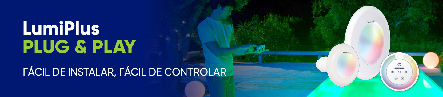 O design do dispositivo foi concebido para uma utilização completamente intuitiva. Apenas 6 botões são suficientes para controlar as luzes e a cor de toda a piscina.